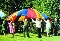 Groot rond doek van PA weefsel met koord. Ideaal voor groepsactiviteiten. In het midden zit een gat, door het koord rondom dit gat aan te trekken wordt het gat gesloten, hierdoor ontstaan weer andere spelmogelijkheden! Afmeting 360 cm.